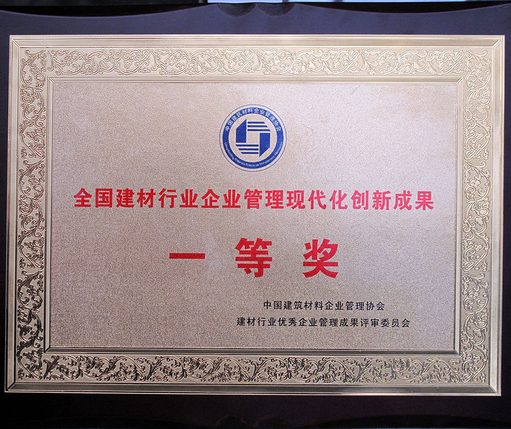 全(quan)國建材行業企業(ye)管理現代化創新(xīn)成果一等獎