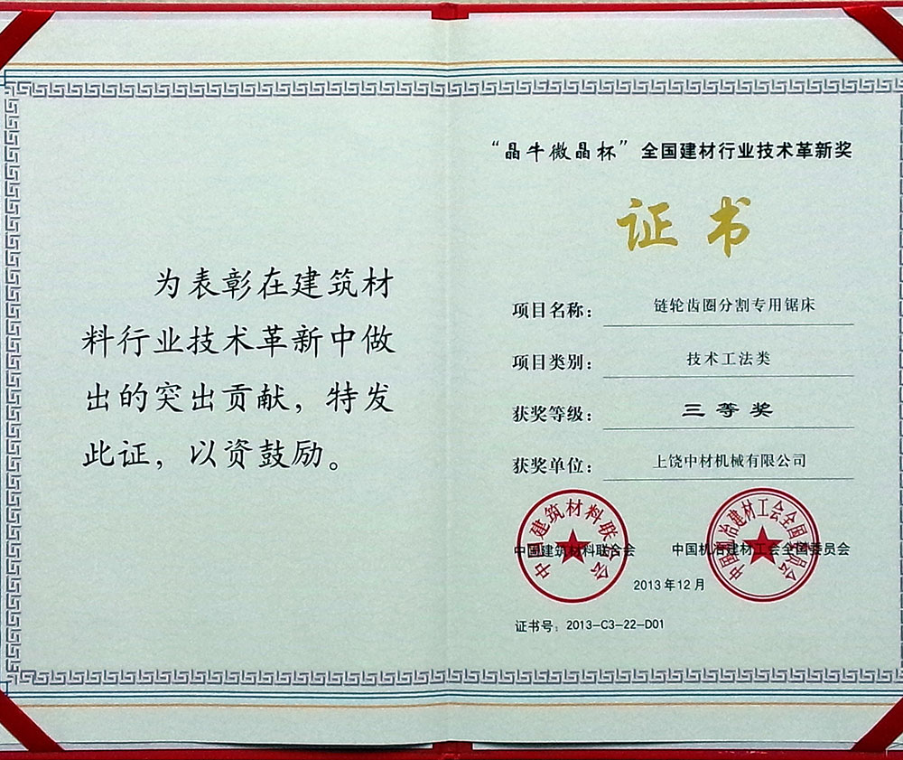 “晶(jing)牛微晶杯”全國建(jian)材行業技術革新(xīn)獎